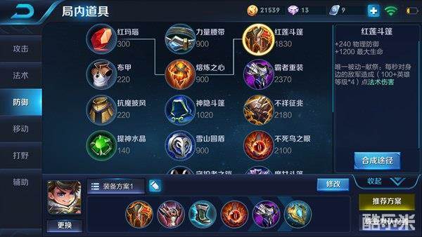 六神装:红莲斗篷、反伤刺甲、抵抗之靴、不死鸟之眼、霸者重装、极寒风暴