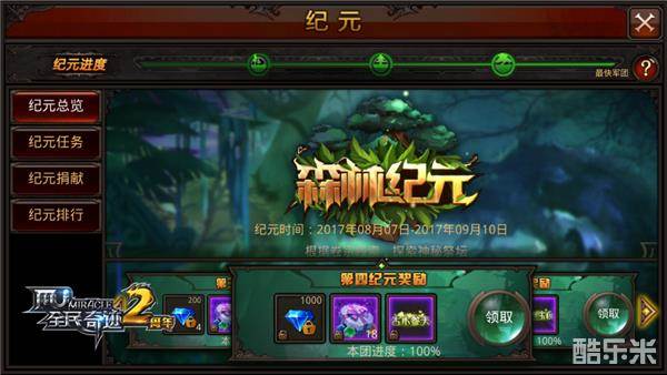 获得称号的首要条件,自然是完成相应纪元进度。以《全民奇迹MU》现目前进行中的森林纪元为例,军团玩家能够在军团相应纪元进度达到100%之后,领取到该纪元的奖励,其中便包括了“芝兰玉树”、“翠玉葱茏”、“层林尽染”、“古木参天”四大森林纪元称号。值得一提的是,若玩家在相应纪元阶段未做贡献,则无法领取该纪元奖励。