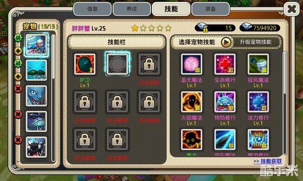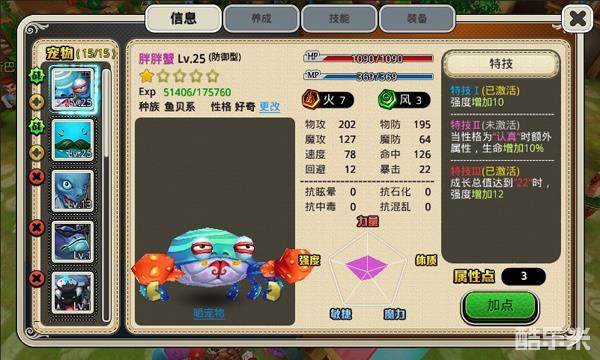 宠物光有给力的属性还不够嗨噢,得有十八般武艺,无论是群体技能还是BUFF技能,当然是多多益善。针对宠物系别和天赋合理搭配,将会让你的宠物变得更加强大。