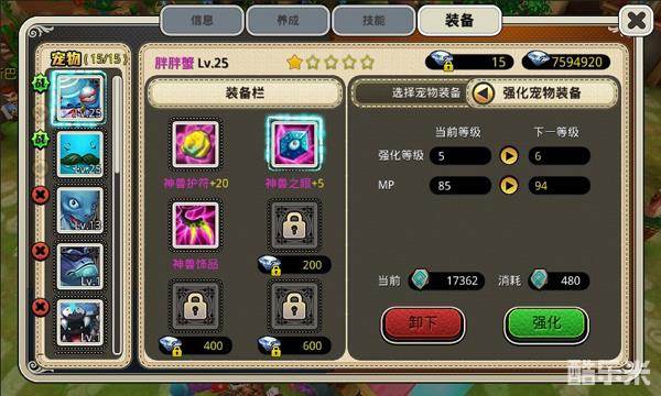 人靠衣装马靠鞍,仅有生存的本领还不够,得有一身又时尚又耐穿的衣裳。不同部位的装备偏重加成的属性各不相同,强化装备会让你的宠物如鱼得水更加强大。