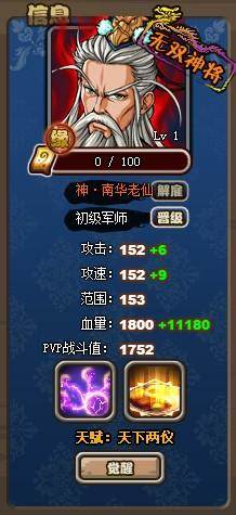 通过无双神将转生系统,即可获得神·南华老仙。