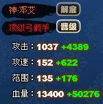 神•邓艾推图天赋没有减速效果,塔攻系数在对空神将中偏低,但技能有大约8秒钟的冰冻减速效果,且对空伤害系数高达33,它的价值与神•张辽的冰霜突袭有异曲同工之妙,但伤害要高出很多倍。PK方面,神•邓艾是继吕关赵张甘之后第六位战心类物理神将,他的相对技触能发率甚至要高于神•吕布,而且技能伤害系数高达150%,也是连发神将当中仅次于神•吕布的,如果说神•甘宁是物理连发走进寻常百姓家的开端,那么神•邓艾就是低端玩家的第一物理PK神将。神邓艾的天赋并不优秀,而且没有聚兵效果,但技能的优势弥补了这个缺点。建议推图时配合有强力聚兵天赋和高伤害塔攻天赋的神将同时使用,如终极曹操、神•赵云、神•马超。平民玩家可以配合神•张辽、神•典韦、无双庞统、左慈等聚兵武将控制士兵前进速度。