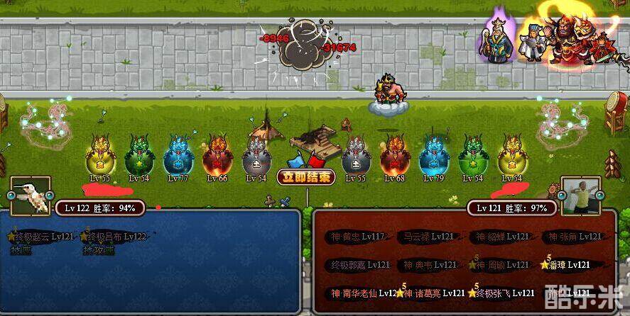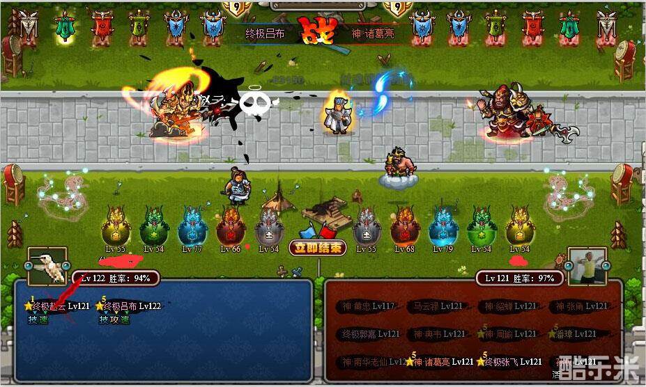 再进行了5次吕布在第一位的战斗, 可以确保打到对方的神周瑜 但是没有一次到神诸葛