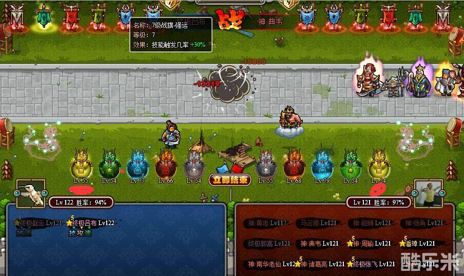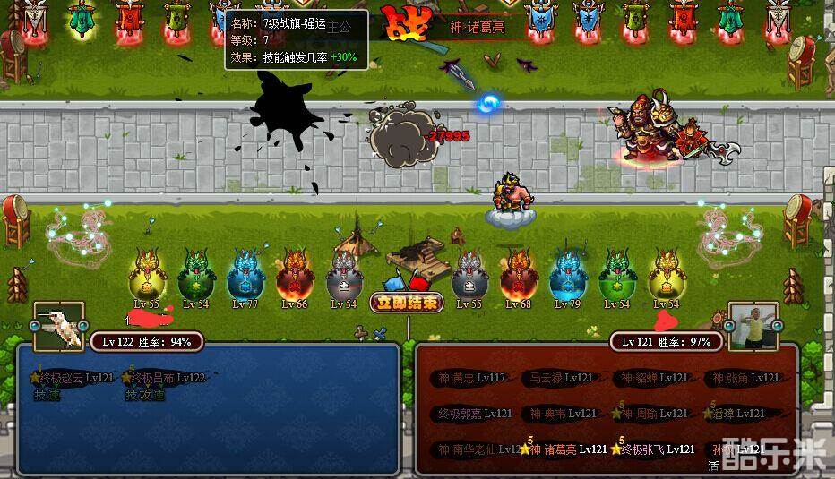 通过8次战斗我发现了一个问题,在七级强运的时候,赵云明显不如吕布的触发好!尤其是针对诸葛的时候。