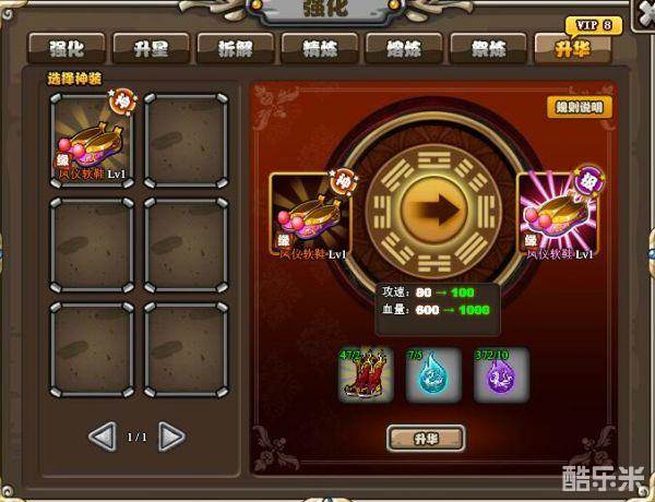 5、升华所需材料装备不可有强化等级、升星等级与祭炼等级