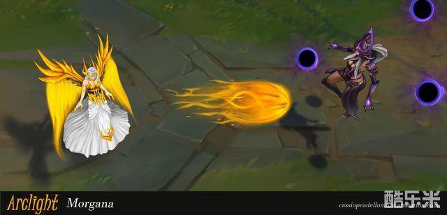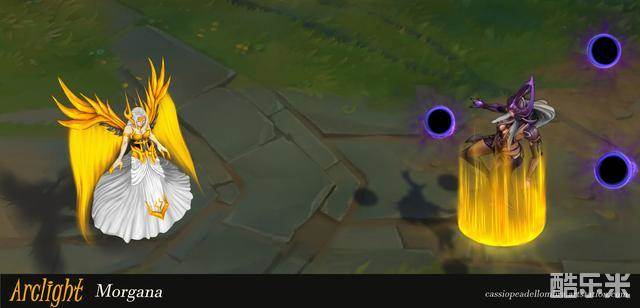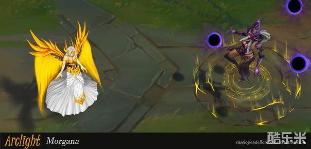 这款皮肤的人物形象设计有一种古希腊神话中的女神风格,身穿白色长裙,翅膀是亮眼的金色。莫甘娜以往的皮肤都是暗黑系路线,这款概念皮肤一改往日的色调,给人耳目一新的感觉。