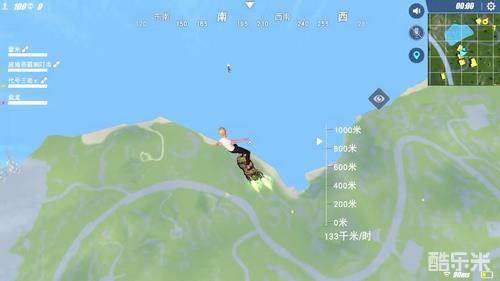 1.在离开飞机后我们可以通过左侧的陀螺仪来控制下降的角度,角度越小水平移动越快下降的速度越慢。角度越大水平移动越慢下降的速度越快。