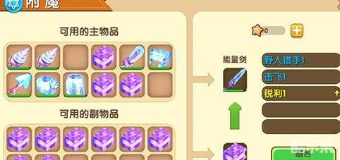 二、附魔属性升级,比如两把附魔属性为点燃1的能量剑,主物品放入一把点燃1的弓,副物品也放入一把点燃1的弓,进行融合得到一把附魔属性为点燃2的能量剑,(附魔书也可以升级)