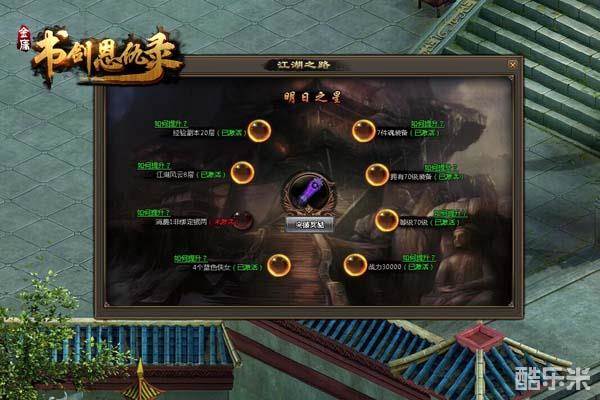 萌乐网新游《书剑恩仇录》中,玩家每天均可参与江湖之路玩法,快速闯荡江湖。江湖之路玩法中,玩家需要完成当前系统派发的八个江湖任务才可继续进行下一次江湖之路。玩家完成的江湖之路任务越多,获得的江湖令牌也越强大。但是到后期,江湖之路玩法中的任务难度会越来越大,对于玩家也是个不小的考验。