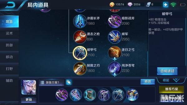 破甲弓:后期破甲弓的物理穿透可以增加铠的攻击,保证自己输出。