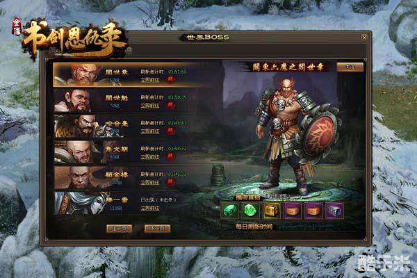 萌乐网《书剑恩仇录》中,每天10:00、14:00、17:00、22:00会刷新不同等级的数只定时BOSS。每只定时BOSS会在世界当中的三个地点同时刷新,所以需要玩家可以不同的地点进行多次挑战。进入BOSS战斗后,对BOSS造成的伤害越高,获得的奖励就越多。将BOSS击杀后,所有玩家都可以对BOSS掉落的宝藏进行挖掘获得奖励哦!
