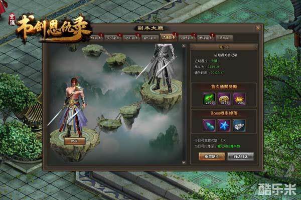 萌乐网《书剑恩仇录》中,玩家达到100级之后可以挑战武魂副本。武魂副本当中每一层关卡均只有一个BOSS,玩家只需将BOSS击败即可领取奖励并进入下一关。玩家成功通关武魂副本后,隔天便可对已通关的副本进行扫荡。扫荡副本所获得的道具与玩家亲自进入关卡所获得的奖励相同。