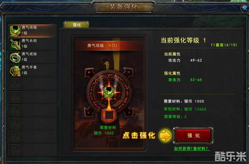 强化阶段,玩家只需要消耗银币,即可对装备进行强化