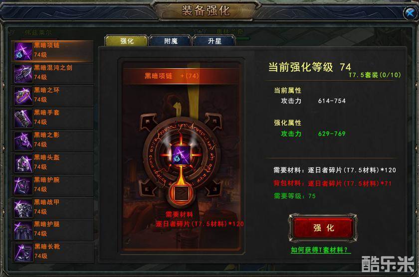 当装备强化到一定等级时,需要消耗特定的材料对装备进行升级,升级之后的装备才能继续强化
