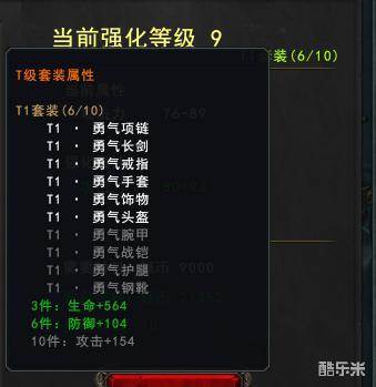 装备凑齐一整套相同T级的,可以获得额外的属性加成。