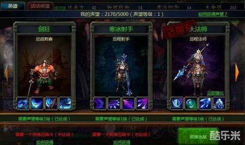 英雄都是在英雄祭坛里招募的,类似于很多游戏里的酒馆,英雄主要分为英雄和活动英雄。