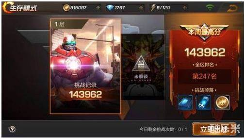 生存模式类似无尽模式的玩法,玩家需要一层一层的挑战。不过区别是,无尽模式中玩家闯过1关会回满生命值和超武;而在生存模式闯过一层小关卡,并不会回复生命值和超武,所以难度非常大。