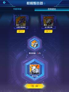 合成系统在家园中的数据整合器内,具体效果见下图,奥米加的合成需要60级的战斗暴龙兽和60级的金属加鲁鲁兽通过6个奥米加合成材料合成。奥米加合成材料将会在最近的更新中推出,而战斗暴龙兽又是初始赠送的数码宝贝,而且系统还推出了SR狼人加鲁鲁兽的究极突破。是不是感觉奥米加兽近在咫尺呢?