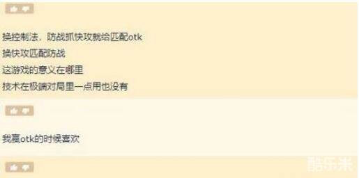 大部分评论对于OTK的看法是,太自闭了。在这些观点中,OTK卡组间的对局就是极端对局的典范,技术在这时候没有一丁点发挥的空间,玩家们比拼的就是谁能够以最快的速度过到自己的组件卡。一些玩家建议将OTK卡组的节奏尽量放缓,这样便可以给快攻腾出更多的生存空间,控制卡组也就有了存在的意义。不然集节奏和强度于一身的OTK玩法将会变得绝无仅有的强势,而没有缺点可以抓,这显然是不合理的。