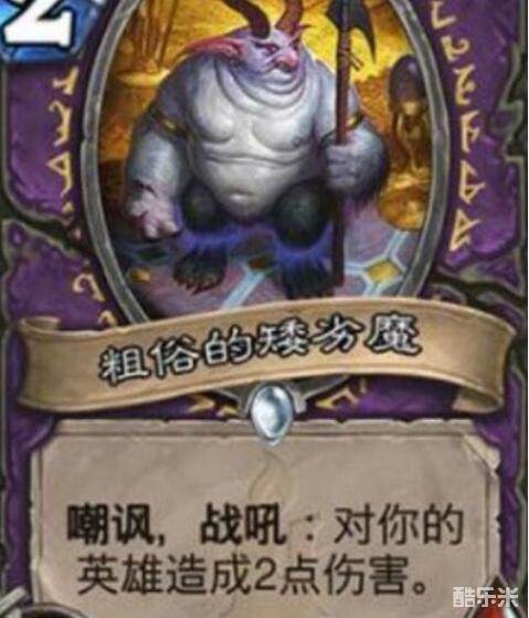 炉石传说之中最为特别的英雄——术士就是靠着自己自残的做法获得更多的特殊东西,而他手中的恶魔族卡片便是如此,而其中作为二费的粗俗的矮劣魔便是这类卡牌的代表者之一,2费2-4的数据绝对不是最好的但也是最没办法的卡牌,唯一的优势就是具有嘲讽能力了。
