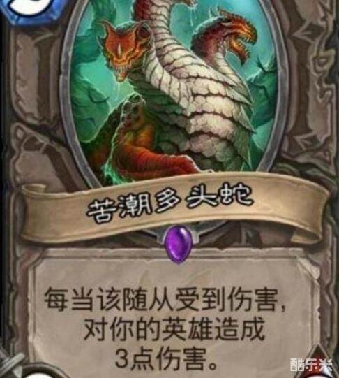 苦潮多头蛇,这张牌怎么说呢?5费8-8的数据是一个非常不错的卡牌,但是它的效果也是非常让人苦逼的事情,因为这张牌每次受到伤害就会让自己受到3点伤害。或许有些玩家们会说这样并不大碍毕竟在中期若能拿到绝对优势是一件非常不错的事情,但是若你的对手利用到了这一点很可能让你在还有10多点血的时候瞬间输局。