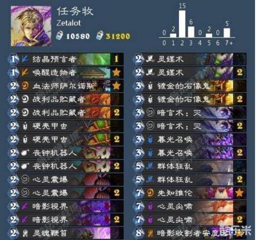 对局方面,在对上快攻卡组时,我们可以切换成任务牧模式,用各类AOE、希望守护者阿玛拉结合灵媒术与英雄技能耗光对方资源进而取胜;在对上中慢速卡组时,控制龙牧体系就更加重要了,而与传统控制龙牧相比,这套卡组的硬币更多(因为我们可能有好多个镀金石像鬼),最后的斩杀也会相应更高。