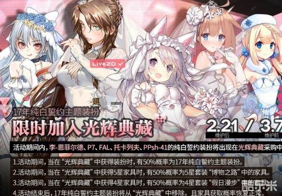 《少女前线》2.21光辉典藏新增物资汇总。少女前线光辉典藏将于2.21更新新一期物资,曾经备受期待的2017年纯白誓约花嫁时装也将在这之后加入新一期光辉典藏。那么这一期物资都有一些什么东西呢,新玩家们又想知道这些物资是否好看。接下来就让我们一起来看一看吧。