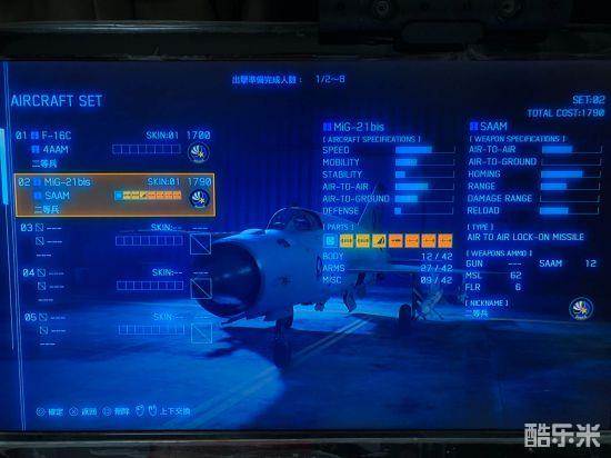 这是我的对战用机,使用的是LV1部件(有储钱习惯不想花钱.这游戏的全部战机都太强了,硬实力更重要)。