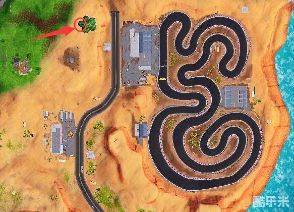 具体位置在卡丁车赛道左边,在地图上非常明显的大树下方。