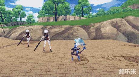 左旋、右砍、横空、斩击!萝莎莉娅挥舞大剑打出连击,对敌人造成物理伤害。