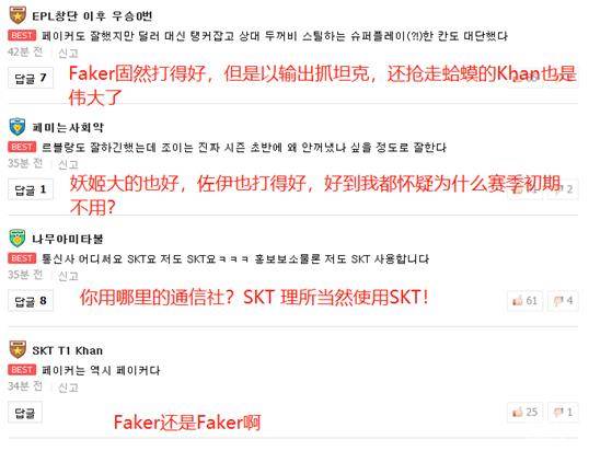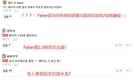 2月16日,LCK春季赛中SKT 2:1击败了老对手GEN,今天Faker发挥非常亮眼,赛后也引起了韩国网友的热议: