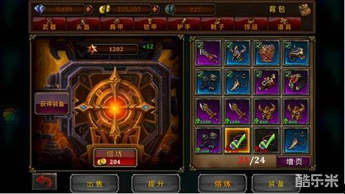 我们主要来看看命运之神中装备的提升。装备提升分为两个部分,强化和进阶,这与大多游戏的装备提升略有不同。强化用来满级,进阶用来升星。装备颜色级别越高,可升星的空间越大,其最终输出就越大。