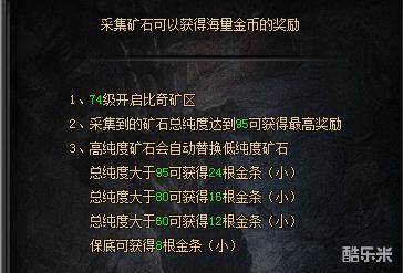 进入矿洞后将随机一种矿石作为目标矿石,挖掘可获得随机纯度的矿石。