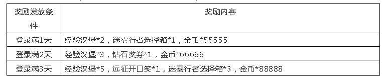 活动内容:活动期间,玩家登录游戏即可领取对应奖励。