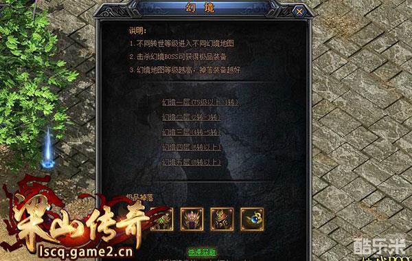 1、不同的转世等级进入不同的幻境地图,越高等级的玩家进入越高层的幻境地图,击杀BOSS掉落的装备也越好!