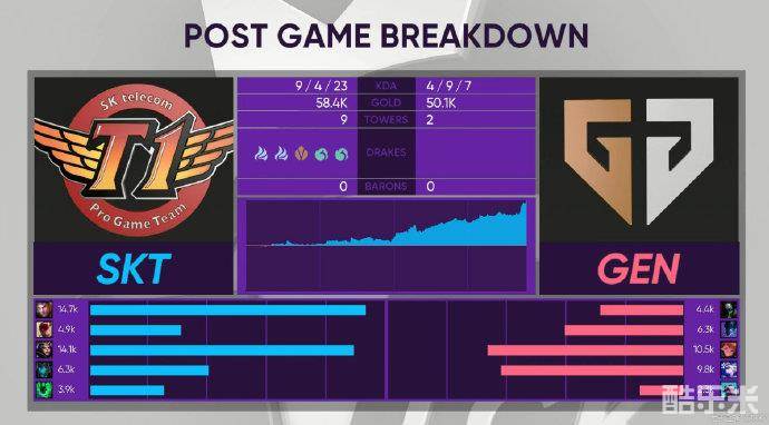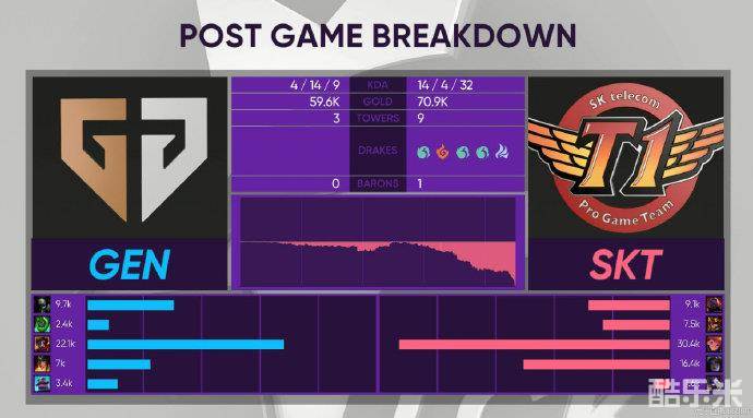 32分钟,火龙团战GEN打出0换3,拿下火龙后再拿下大龙,随后成功结束比赛,取得首局胜利!