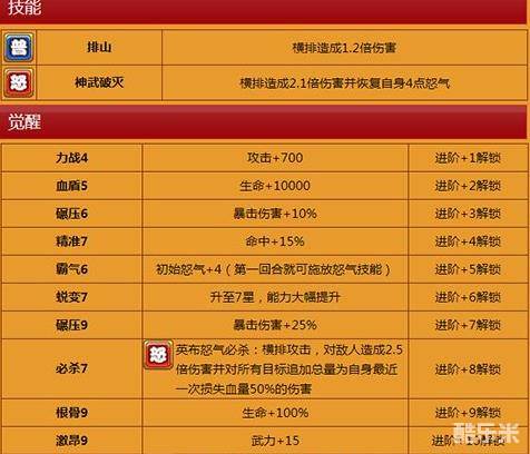 虽然解雇很悲惨,但是他依然是一位很出色的武将,他是一位物理输出的武将,主切横排,伤害很高,但是没有控制,可以根据阵容需要来选择,同时喜欢切横排的玩家也可以尝试玩一玩,但是并不主推。