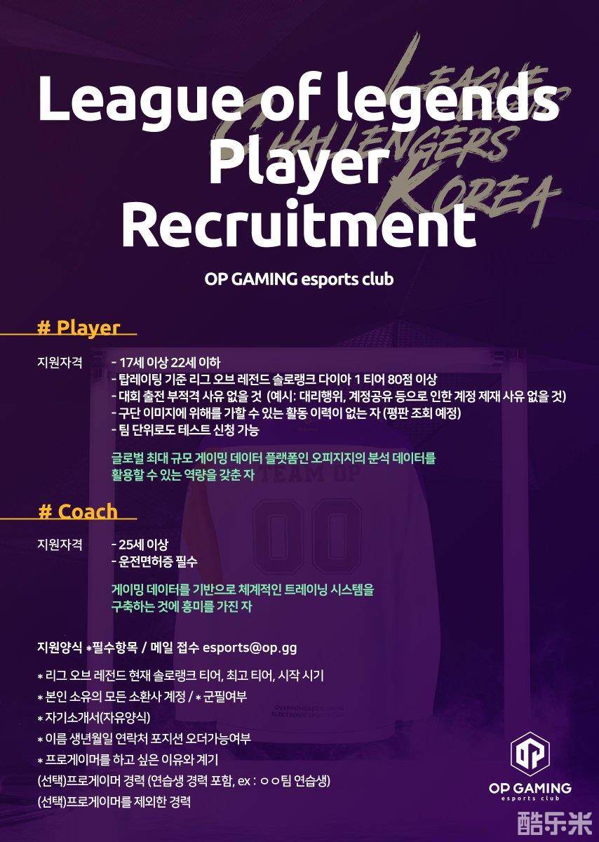 OP Gaming正在招募英雄联盟项目的选手以及教练