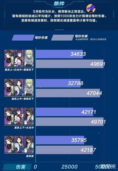 打BOSS常用莫奈上中普朗克下,由于雷伤体系往往会带鬼铠或鬼角或一起带,长光中的30%易伤效果会逊色于莫奈中加上莫奈两件套带来的60%雷电元素伤害,此时月轮的雷电元素伤害与雷易伤都较高。