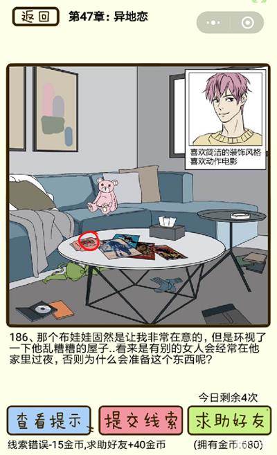 在再见吧渣男手游中异地恋第186关究竟该怎么过呢?男友出轨的线索又在哪里呢?相信很多小伙伴们都有同样的疑问,那么下面就来看一下吧!