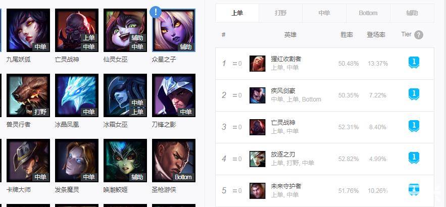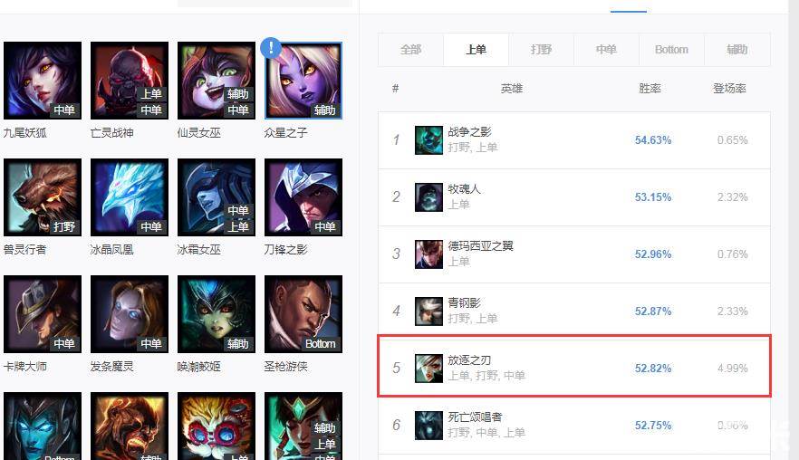 不仅是Tier表现好,锐雯在胜率榜上的表现也相当出色,锐雯目前以52.82%的出色战绩处于上单第五的位置,登场率也要比前几个英雄好一些,而且像锐雯这样上下限都很高的英雄,如果胜率很高,说明这个英雄的整体强度真的已经足够高了,在大多数对局中,锐雯都能打出不错的成绩。