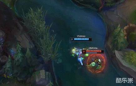 在对线OMG的明星上单阿乐时,jinoo也是丝毫不手软,七级时直接一波蹲草丛,熟练QA打出爆炸伤害,W技能打断青钢影的E技能,完美伤害计算,直接击杀青钢影,对线打出巨大优势。