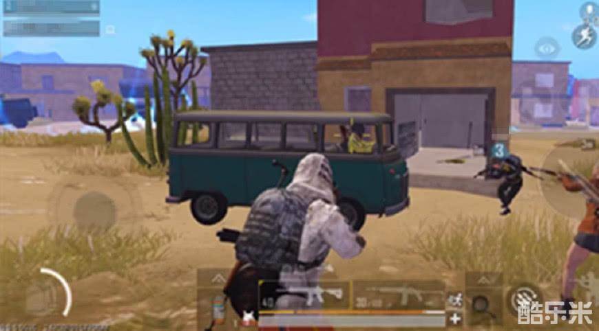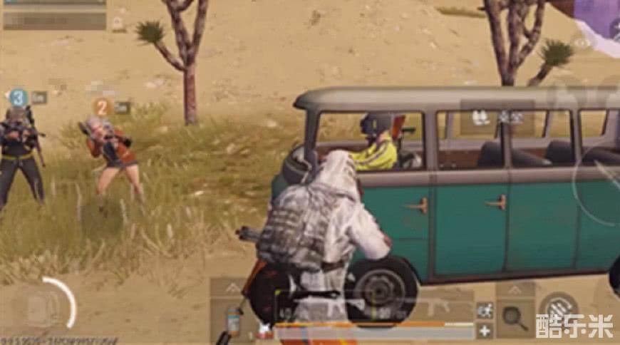显然,此时驾驶着小巴士的这位玩家有些不知所措,他呆呆地看着周围三名对他虎视眈眈的敌人,坐在车里一动不动,他大概觉得如果此时他继续开车逃走肯定会被乱弹扫死吧。这三位玩家也是相当有趣了,看这位敌人坐在车里不动,他们也没有主动去攻击他。