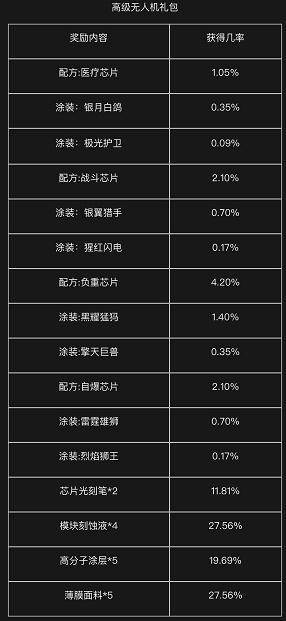 近日,网易官网曝光了无人机芯片的抽取率,高级无人机礼包大概是基础无人机礼包的1.5倍。