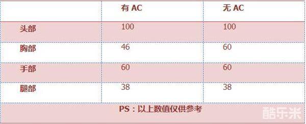 根据上述信息,我们可以看出:被左轮-金韵命中头部,无论目标有无配置AC,必然被淘汰;其次,命中目标胸部,有AC需3枪,无AC则为两枪。其他部位则为2~3枪(无论有无AC)。