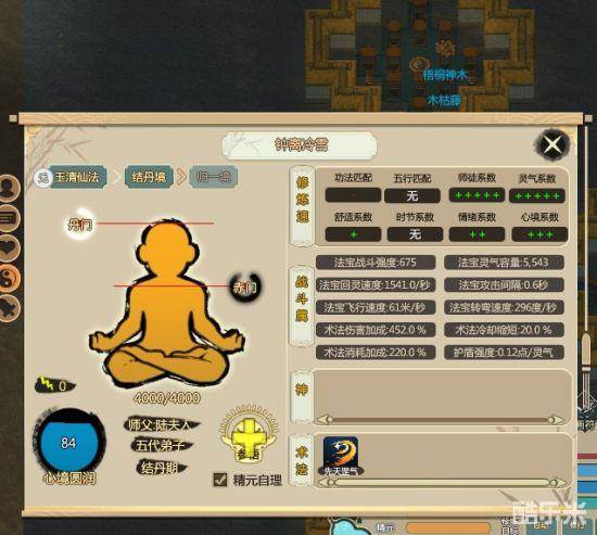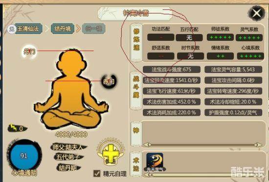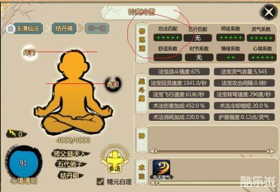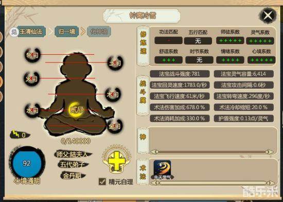 传功后小人的五维中的悟性增加了,最大灵气由7377变成了7535,她的结丹时间会长20分钟,影响不大。主要看一下面板上功法匹配带来的影响。