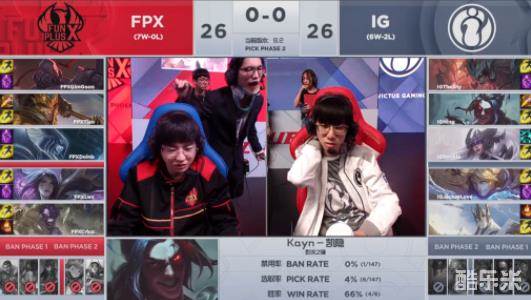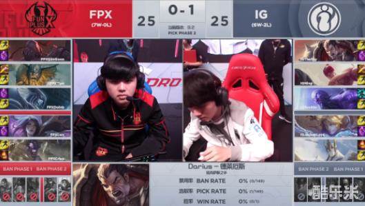 在首局比赛中IG阵容为三核心,FPX则是将侧重点放在卡莎身上,开局双方发生多次火拼,虽说人头比分不相上下,但是IG在经济上已经实现领先之势,进入中后期,IG加快节奏拉开经济差距不让FPX有挽回局势的机会,最后IG在团战中打出小团灭拿下大龙顺利推平高地!MVP给到数据6-1-7的JKL。