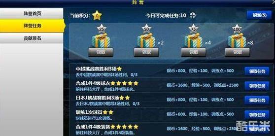 阵营任务的确很好玩也很容易完成,譬如:中超挑战赛胜利、训练球员、合成球衣、合成球员卡、搜索球员等等!