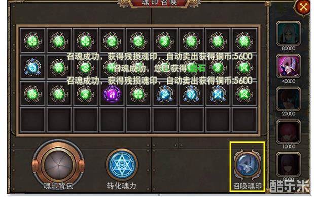 魂印可以放进魂印背包,也可以转化成魂力,升级魂印需要消耗魂力,品质越高等级越高的魂印,所提供的属性也越高。在召唤过程中,玩家有几率获得魂晶,魂晶可以用来直接兑换高级魂印。