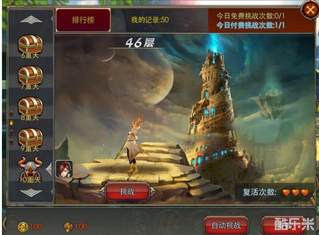 1. 神眷之塔共有100层,本次更新只开放前50层;